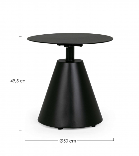 Кофейный столик Aloha выполнен полностью из алюминия. Круглая столешница возвышается над коническим основанием, что создает стильную конструкцию, которая подойдет для современных интерьеров.