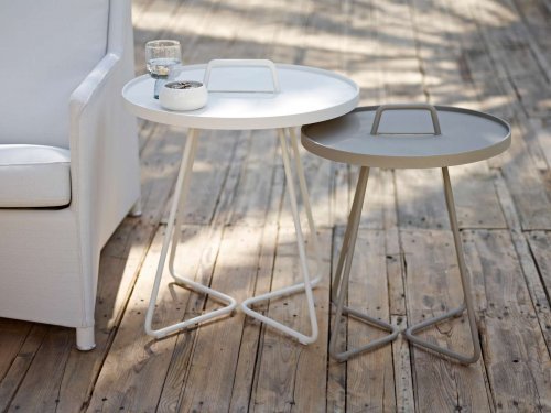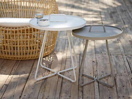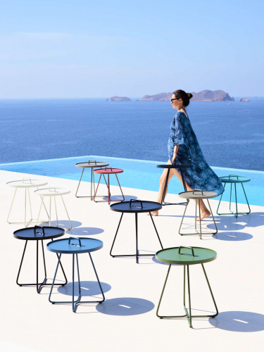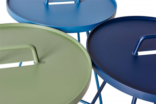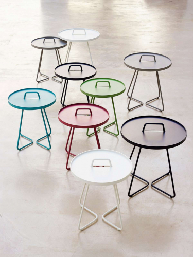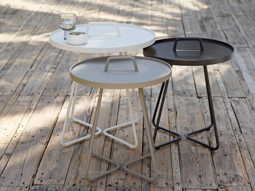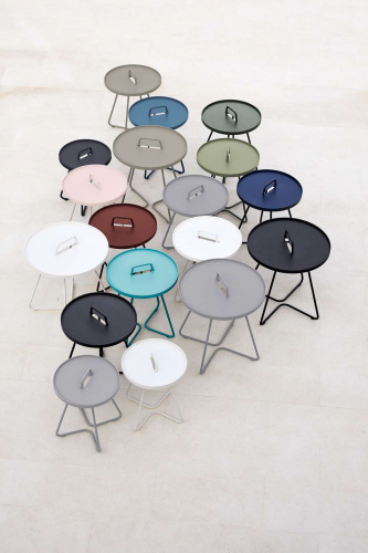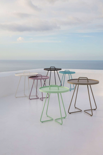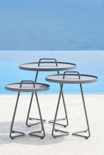 Коллекция столиков On-the-move состоит из трех моделей: Lagre Ø520х600 мм, Small Ø440х540 мм, x-Small Ø370х465 мм, которые можно комбинировать или расставлять по отдельности для оформления вашего открытого пространства.