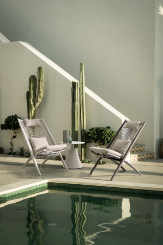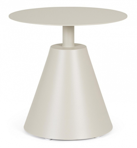 Кофейный столик Aloha выполнен полностью из алюминия. Круглая столешница возвышается над коническим основанием, что создает стильную конструкцию, которая подойдет для современных интерьеров.