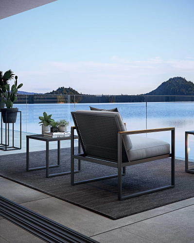 Qubik имеет простые и строгие формы, которые меняют концепцию композиции. Кубические стороны превращаются в подлокотники с деталями из тика, в спинках из металлических листов и сиденьях, где вы можете расслабиться. Вся алюминиевая мебель Atmosphera имеет порошковое покрытие белого или графитового цветов. Порошковое покрытие обеспечивает устойчивость поверхности к ударам и царапинам. Изделия хорошо подходят для того, чтобы их можно было оставлять на улице круглый год и легко чистить.