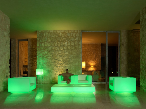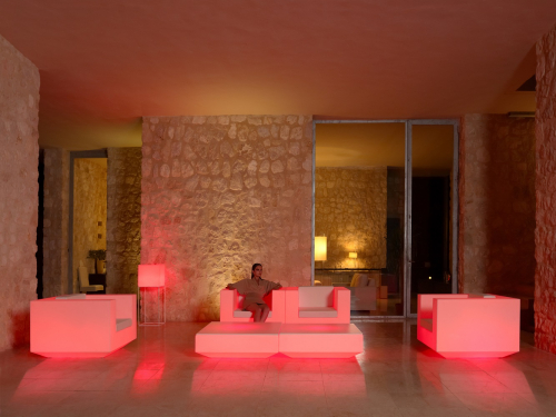 Vela - это обширная коллекция уличной мебели, направленная на то, чтобы предложить комфорт и качество, не теряя при этом оригинальных особенностей. Эта модульная коллекция с элементарной призматической геометрией основывает свою особенность на балансе пропорций. Элементы могут объединяться между собой для интеграции в любое пространство. Их точные объемы создают иллюзию парения в нескольких сантиметрах от пола, а когда они освещаются, то превращаются в плавающие архитектуры.