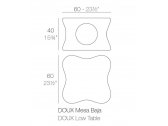 Одной из особенностей является многоцелевая природа столика - если его положить, он выполняет роль стола с пустотой, которая работает как пространство для хранения; если его поставить, он становится полым и может использоваться как цветочный горшок или как прохладное ведро для шампанского, вина и т. д.