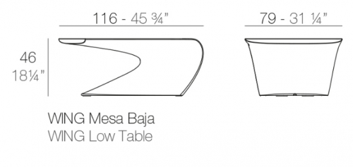 Коллекция Wing была рождена путем динамического движения прямых и изогнутых линий. Эти экстремальные изгибы и углы, которые являются типичной чертой новейших достижений архитектуры, теперь обратились к дизайну мебели, выходя на свободную, нежную и органичную линию, которая генерирует движение и отделяется от любого прежнего следа чрезмерной жесткости. Это смелые изделия, которые составляют коллекцию мебели с огромным визуальным воздействием и впечатляющим скульптурным и динамическим значением.