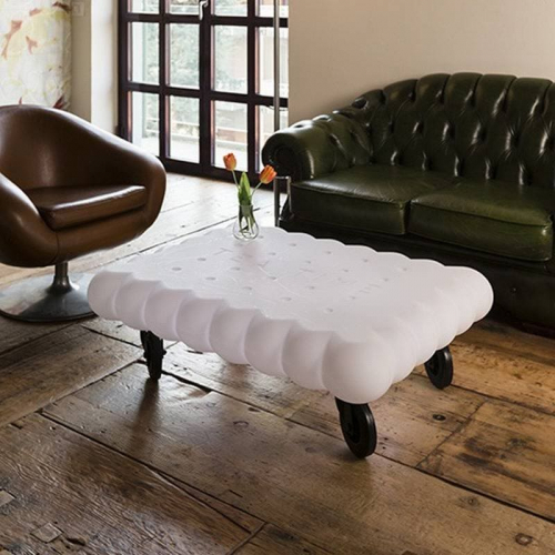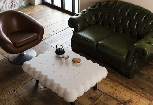 Gianni Arnaudo создает Tea Time, забавный и игривый журнальный столик. Tea Time придает нотку иронии жилым комнатам, как для сферы Contract, так и для домашних условий. Идея дизайна Tea Time исходит из желания использовать еду для создания объекта дизайна. Так Gianni Arnaudo превращает классический чайный бисквит в изысканный и иронический журнальный столик. Четыре маленьких колеса заменяют ножки, поэтому журнальный столик Tea Time является функциональным и легко перемещается.