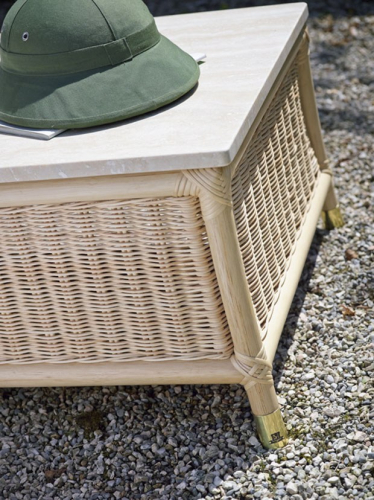 Мебель Vega вдохновлена игрой плетений. Плетение из натурального ротанга плотное и компактное. Окончательный эффект производит впечатление легкости и солидности. Структура и тканые секции полностью выполнены из ротанга и лозы и созданы вручную с тщательным вниманием к деталям. Эти натуральные материалы украшены мельчайшими деталями, такими как золотые ножки и ручки, а также элегантными тканями и карманами для хранения, которые украшают структуру и придают изделиям величественный вид. Чтобы сохранить долговечность натуральных материалов, из которых изготовлена мебель из этого ассортимента, как и все элементы коллекции Orangerie, их следует использовать в местах, защищенных от дождя и прямых солнечных лучей. Элементы линейки Vega можно использовать на верандах или в зимних садах, а также в оздоровительных центрах и спа, поскольку они устойчивы к влажности.