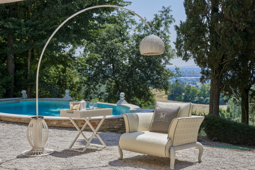 Мебель из синтетического волокна VIRO® ручной работы, разработанная для длительного использования на открытом воздухе и, следовательно, устойчивая к любым атмосферным воздействиям. Обладает устойчивостью к перепадам температур (от -70°C до +80°C), ультрафиолетовым лучам, не теряет цвет, влагостойкостью, устойчивость к соли и хлору, плесени. Это нетоксичный экологичный материал (на 100% перерабатываемый), по ощущению как натуральный материал. Корпус мебели реализуют из крашеного алюминия, покрытого плетением из специального синтетического волокна того же цвета. Посмотреть палитру материалов Samuele Mazza.