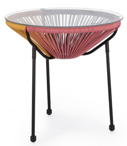 Кофейный столик Parker обладает инновационным дизайном, который заключается в металлическом каркасе и плетении, изготавливающимся из высококлассных материалов, позволяющих использовать его на открытых пространствах. Разноцветный роуп из синтетических волокон придает модели игривый характер, а три ножки из стали обеспечивают максимальную устойчивость и долгий срок службы.