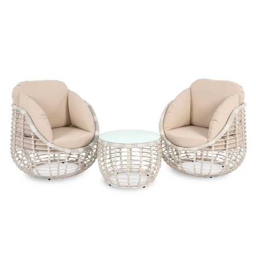 Закаленное стекло защищает ажурное плетение трубчатого ротанга, создавая визуальную глубину (каждый завиток ротанга виден как на ладони), практичность и контраст текстур (холод стекла + тепло ручного плетения).