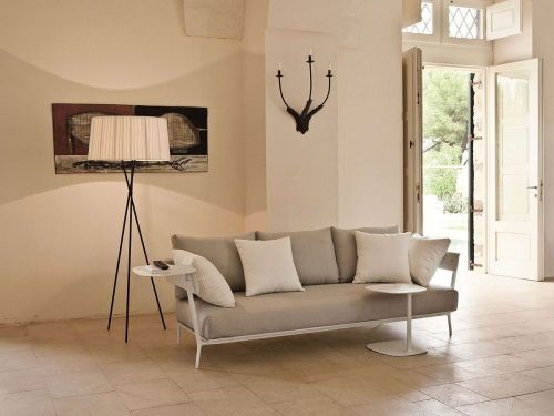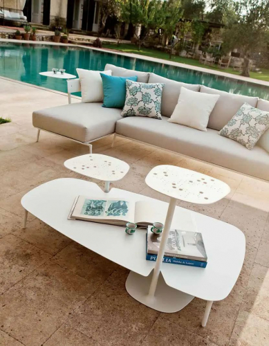 Приставной столик Aikana обладает неоспоримым шармом благодаря своим чистым линиям и тонкой композиции. В изготовлении модели используются компоненты из литого под давлением алюминия, чтобы сохранить минимальный вес и обеспечить максимальную мобильность. Столик Aikana имеет зеркальное основание и основную поверхность. Он полностью адаптирован для использования на открытом воздухе. Чтобы добиться еще большего комфорта его можно использовать рядом с креслами и диванами из этой же коллекции.