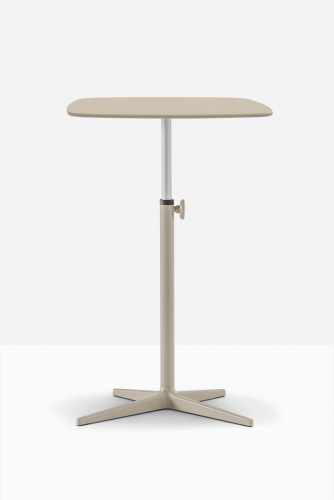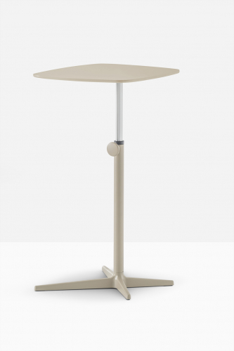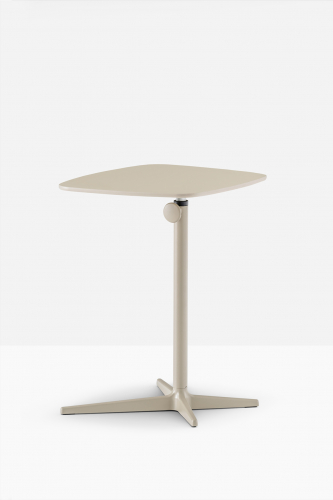 Легкий и маневренный, функциональный приставной столик Diego обеспечивает максимальную гибкость и адаптивность, улучшая комфорт и эргономику во время работы или отдыха. Литое основание и экструдированная ножка изготовлены из алюминия. Основание оснащено четырьмя спицами, причем две передние асимметричны задним, что позволяет расположить стол максимально близко к сидящему. Эта деталь делает его идеальным для работы, сидя на диване или отдыхая в кресле с чашкой кофе. Стальная трубчатая колонна обеспечивает устойчивость, а ручка обеспечивает простую и интуитивно понятную регулировку. Столешница HPL с ее трапециевидной формой со скругленными углами может быть либо того же цвета, что и основание, либо с другой отделкой.