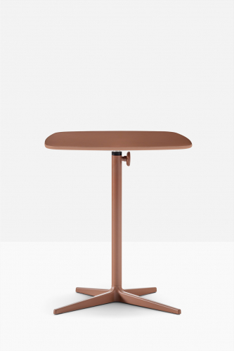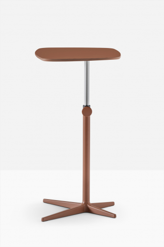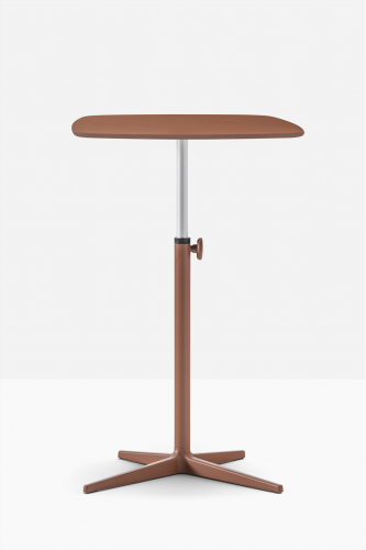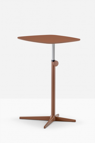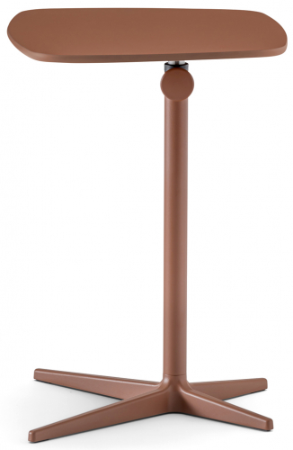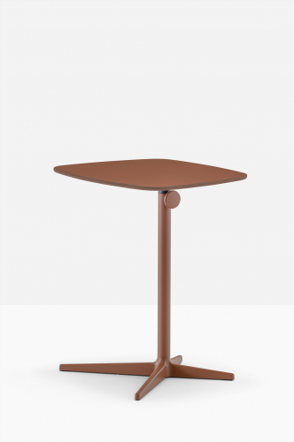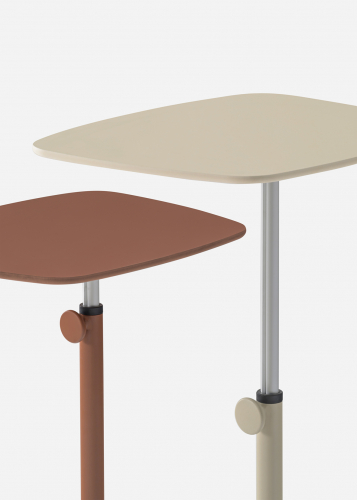 Легкий и маневренный, функциональный приставной столик Diego обеспечивает максимальную гибкость и адаптивность, улучшая комфорт и эргономику во время работы или отдыха. Литое основание и экструдированная ножка изготовлены из алюминия. Основание оснащено четырьмя спицами, причем две передние асимметричны задним, что позволяет расположить стол максимально близко к сидящему. Эта деталь делает его идеальным для работы, сидя на диване или отдыхая в кресле с чашкой кофе. Стальная трубчатая колонна обеспечивает устойчивость, а ручка обеспечивает простую и интуитивно понятную регулировку. Столешница HPL с ее трапециевидной формой со скругленными углами может быть либо того же цвета, что и основание, либо с другой отделкой.