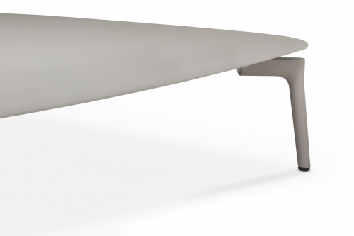 Aikana – журнальный столик с оригинальными очертаниями. Он плавно и естественно станет частью повседневной жизни. Его вырезанные детали одновременно декоративны и практичны, поскольку позволяют с элегантностью и легкостью устанавливать в него боковые столики из той же коллекции. Он изготовлен из легкого и прочного алюминий, который не подвержен коррозии. Такой металл является популярным выбором в дизайне уличной мебели.
