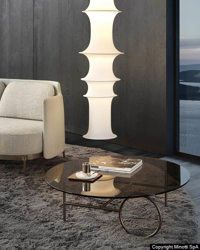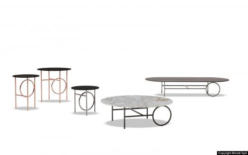 Верный своей философии дизайна, которая часто бросает вызов правилам геометрии, Nendo задумал Ring, коллекцию столов, играющих с контрастами между прямыми линиями и кривыми. Дизайн легкой металлической конструкции, очерченной ортогональными линиями, прерывается большими кольцами, размещенными в разных местах. Помимо нарушения геометрической правильности силуэта, круги в зависимости от размеров стола становятся соединительными или опорными элементами. Взгляд привлекает пустота в центре колец с эффектом простора и легкости.