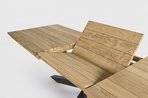 Раздвижной обеденный стол Palmdale идеально сочетается с креслами и стульями фабрики Garden Relax и подойдет для больших компаний, ведь он может вместить до 12 гостей. Столешница выполнена из тикового дерева А класса SVLK (индонезийская легальная древесина), алюминиевые разборные ножки с порошковым покрытием (полиэстер), саморезы - из оцинкованной стали.