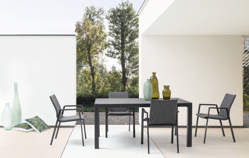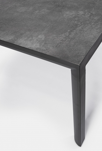 Обеденный стол Mason станет украшением любого открытого пространства, благодаря стильной керамической столешнице толщиной 10 мм. Каркас с разборными ножками выполнен из алюминия с порошковым покрытием (полиэстер), что обеспечивает устойчивость и долговечность конструкции. Стол предназначен для размещения 6 персон.