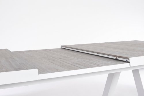 Раздвижной механизм позволяет регулировать длину столешницы от 2050 мм до 2650 мм, тем самым позволяя разместить 10 гостей за столом.
