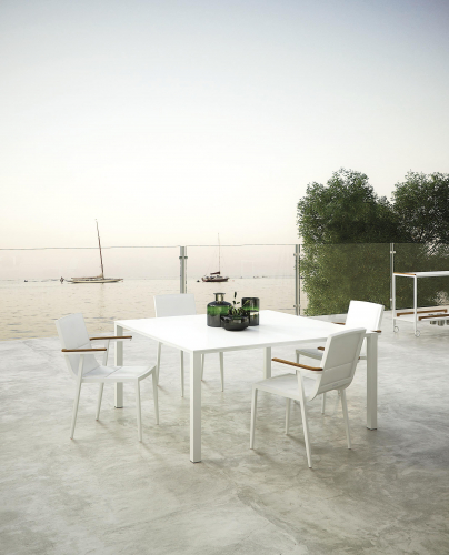 Flair - коллекция, которая имеет стильный внешний внешний вид, удобные формы и легко адаптируемый дизайн. Идеально подходит для обстановки открытых пространств. Вся алюминиевая мебель Atmosphera имеет порошковое покрытие белого или графитового цветов. Порошковое покрытие обеспечивает устойчивость поверхности к ударам и царапинам. Изделия хорошо подходят для того, чтобы их можно было оставлять на улице круглый год и легко чистить. HPL (ламинат высокого давления) представляет собой декоративный ламинат, который состоит из основы (крафт-бумага, пропитанной феноловыми термопластичными смолами) и лицевой поверхности, прикрытой слоем так называемого оверлея (бумаги с термоотверждающей смолой). Керамогранит Gres, полученный путем высокотемпературного прессования чистых материалов, таких как минералы и глина, без каких-либо синтетических смол и химических соединений, является прочным и непористым. Каменная отделка полуглянцевая, имеет естественный вид и мягкая на ощупь.
