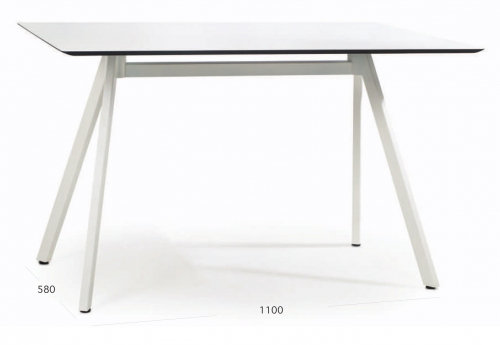 Стол может быть оснащен столешницей из ламината МДФ (18 мм) или столешницей из ламината компакт (12 мм) и каркасом с порошковым покрытием.