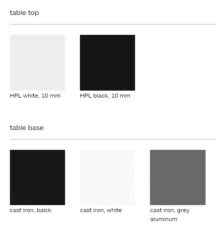 Цена указана за модель со столешницей из HPL FunderMax в черном цвете.
