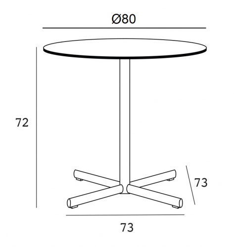 Стол Fade имеет центральную одинарную опору и четыре горизонтальные ножки с регулируемыми подпятниками. Напольная крестовина из литого под давлением алюминия позволяет установить HPL-столешницу как круглой (диаметр 800 мм), так и квадратной формы (800х800 мм). Специальная окраска делает стол пригодным для использования как внутри, так и снаружи.