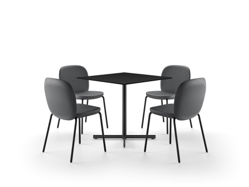 Стол Fade имеет центральную одинарную опору и четыре горизонтальные ножки с регулируемыми подпятниками. Напольная крестовина из литого под давлением алюминия позволяет установить HPL-столешницу как круглой (диаметр 800 мм), так и квадратной формы (800х800 мм). Специальная окраска делает стол пригодным для использования как внутри, так и снаружи.