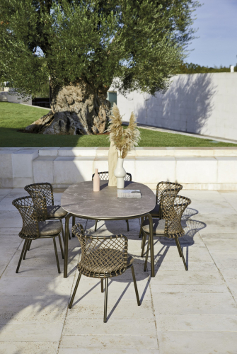 Стильный овальный стол Charme — идеальное решение для дома или коммерческого пространства. Его элегантный дизайн с извилистой стальной рамой из высококачественной стали 304 с порошковым покрытием станет настоящей изюминкой любого интерьера.