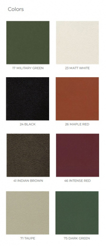 Чтобы продукт находился в хорошем состоянии в течение длительного времени, мы рекомендуем регулярно его чистить; чаще в очень влажных местах с морским климатом. Рекомендуется чистить поверхности мягкой тканью с водой или мягкими моющими средствами. Длительное и непрерывное воздействие интенсивного ультрафиолетового излучения или очень низких температур может повлиять на начальные характеристики окрашенного покрытия, изготовленного из полиэфира. Мы рекомендуем чистить и хранить продукты в защищенных местах в течение продолжительных периодов неиспользования и в зимний период.