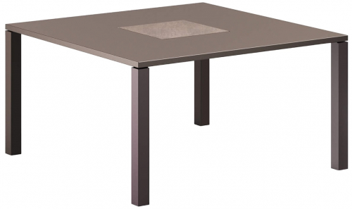 Quadro - это это 8-местный квадратный стол из стали, специально разработанный с большими размерами, чтобы разделить приятные моменты с абсолютным комфортом. В конструкции предусмотрена съемная и заменяемая центральная вставка, доступная из перфорированного листового металла, тика FSC или керамогранита: персонализируемый аксессуар, который можно адаптировать к любому стилю и набору обеденных стульев.