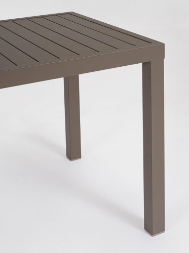 Стол полностью выполнен из алюминия с порошковым покрытием (полиэстер), что обеспечивает устойчивость и долговечность конструкции.