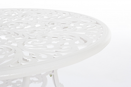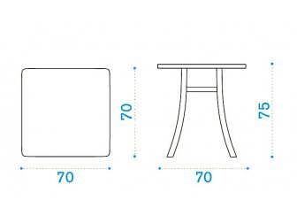Стол полностью выполнен из алюминия с порошковым покрытием (полиэстер) для наружного применения с полуглянцевой отделкой.