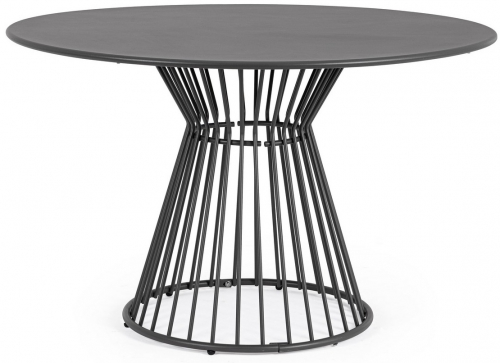 Металлический обеденный стол Austin с круглой столешницей станет украшением любого открытого пространства. Дизайн стола сочетает в себе ажурную основу в виде песочных часов из тонких стальных прутьев и большую стальную столешницу. Благодаря конструкции модель выглядит легкой и воздушной и прекрасно выполнит свою функцию на кухне, в столовой и гостиной. Регулируемые ножки. Основание для сборки.