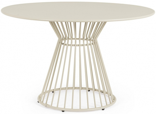 Металлический обеденный стол Austin с круглой столешницей станет украшением любого открытого пространства. Дизайн стола сочетает в себе ажурную основу в виде песочных часов из тонких стальных прутьев и большую стальную столешницу. Благодаря конструкции модель выглядит легкой и воздушной и прекрасно выполнит свою функцию на кухне, в столовой и гостиной. Регулируемые ножки. Основание для сборки.