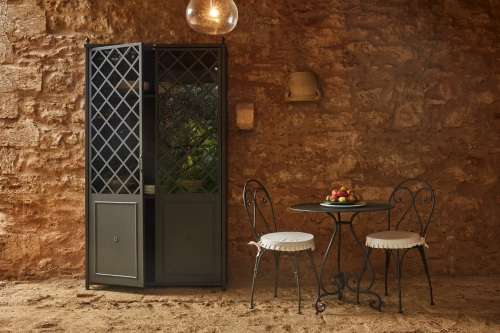 Каркас из железа изготавливается вручную и выкован вручную. При гальванизации железо обрабатывается технически более совершенным типом окраски. Более экологичный, потому что он устраняет летучую часть краски, состоящую из загрязняющих растворителей и разбавителей, более эффективный, потому что он дает более прочное покрытие, а также создает более элегантную отделку.