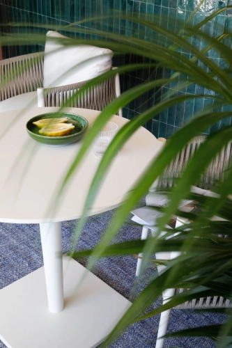 Дизайнеры уделили внимание каждой детали: сужающиеся книзу ножки визуально парят в воздухе, даря мебели ощущение невесомости. Однако эта лёгкость - лишь иллюзия, ведь алюминий гарантирует исключительную устойчивость и долговечность.