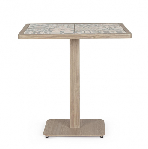 Kalimera - компактный квадратный обеденный стол, созданный для стильного и практичного оформления зон питания. Столешница облицована высококачественной глазурованной фарфоровой плиткой испанского производства, которая отличается исключительной износостойкостью, устойчивостью к царапинам, влаге и перепадам температур. Алюминиевая центральная ножка с порошковым покрытием и основание из стали с электрофорезной обработкой и дополнительным порошковым покрытием гарантируют максимальную прочность конструкции и надежную защиту от коррозии даже при интенсивной эксплуатации на открытом воздухе.