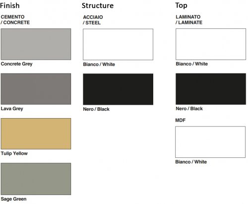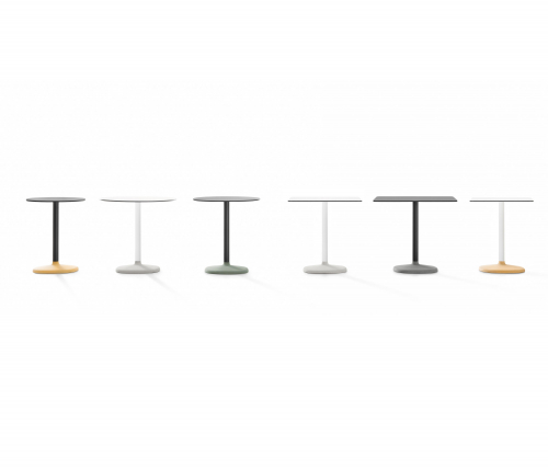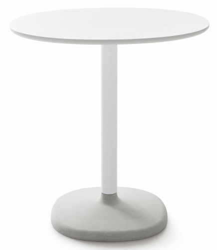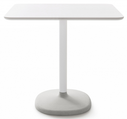 Стол Fonda с почти архетипическими линиями, рожденный смягченной реконструкцией его геометрии. Мягкое круглое бетонное основание, окрашенное в массе из палитры каталога, вмещает цилиндрическую металлическую конструкцию, поддерживающую столешницу из МДФ или ламината. Он доступен в 2 вариантах высоты (730 и 1050 мм, с квадратной или круглой столешницей.