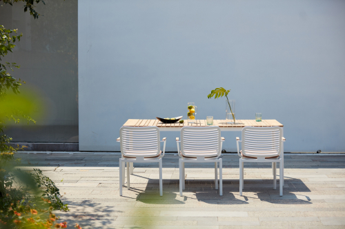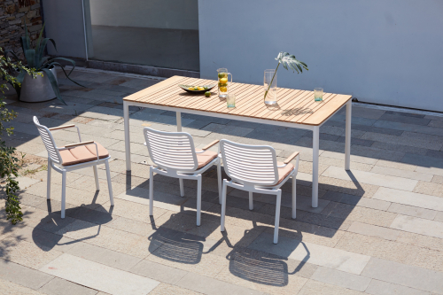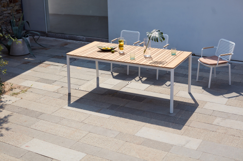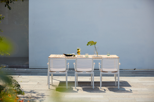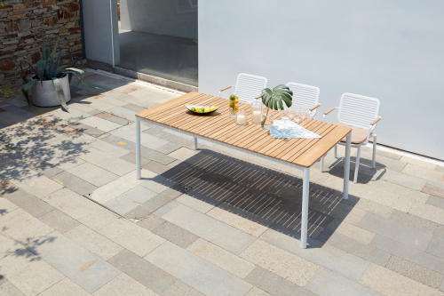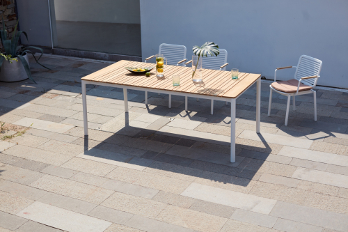 Универсальный уличный обеденный стол Armona с красивой реечной столешницей из тикового дерева и алюминиевой рамой. Этот классический стол станет изысканным и элегантным дополнением к Вашему заднему двору или открытому пространству. Детализированная рама стола с ножками уникальной изогнутой формы придает столу характер и солидность. Обеденный стол Armona спроектирован и изготовлен так, чтобы выдерживать любые погодные условия. Вместе с креслами из одноименной серии это идеальный выбор для открытых площадок кафе, ресторанов, баров или даже Вашего собственного двора, настоящее воплощение стиля и функциональности.