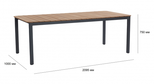 Универсальный уличный обеденный стол Mallow с красивой реечной столешницей из тикового дерева и алюминиевой рамой создает идеальную атмосферу для обеденной зоны на свежем воздухе. Легкий и прочный алюминиевый каркас, покрытый порошковым материалом, обеспечивает надежную поддержку и устойчивость к внешним воздействиям. Стильная и прочная столешница из тика придает нотку природной элегантности. Обеденный стол Mallow поможет создать уютное место для отдыха во дворе, где Вы сможете наслаждаться свежим воздухом и природой в окружении стильной мебели, добавит элегантности и комфорта на террасе для расслабления после трудового дня или для вечерних посиделок, привнесет изысканность в коммерческое пространство, предоставляя Вашим гостям удобное место для отдыха и общения.
