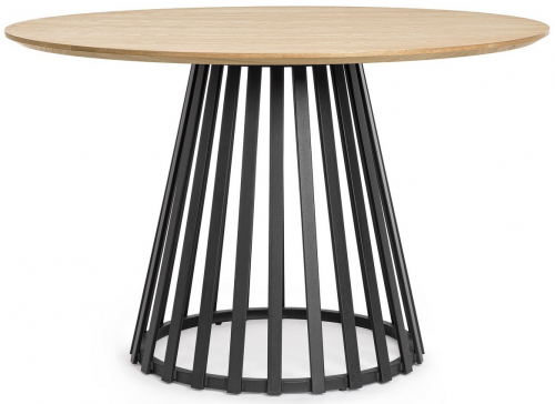 Стол Cillian - это предмет мебели, имеющий привлекательный внешний вид. Его красивая расцветка позволит ему сочетаться со многими композициями, выполненными как в светлых, так и в темных тонах. Этот стол выполнит свою функцию на кухне, в столовой и гостиной. Он имеет коническую ажурную основу из стали с порошковым покрытием. Круглая столешница, рассчитанная на 6 человек, изготовлена из плиты МДФ ясеня толщиной 25 мм и покрыта полиуретановым лаком.