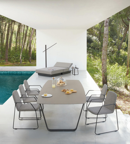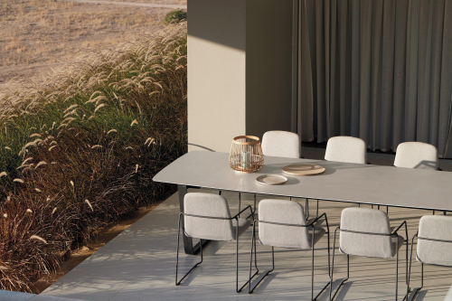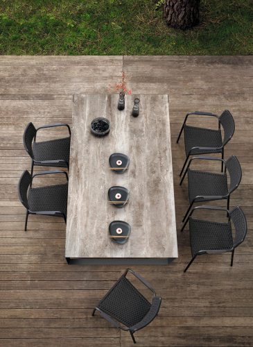 Обеденный стол Air подходит для любого стиля и имеет классический дизайн, излучающий очарование и теплоту. Он рассчитан на комфортную рассадку 8 персон. Каркас, изготовленный из железа, обеспечивает долгий срок службы модели и повышенную устойчивость, а керамическая столешница, сохраняющая естественный вид камня, придает элегантный и лаконичный характер. Большой выбор вариантов отделки каркаса и столешницы позволяет подобрать наиболее подходящее изделие.