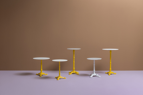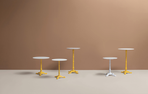 Прочная выразительная и фактурная составляющая чугуна представлена в коллекции столов Bistrot, делая их совершенно неподвластными времени. Стол представлен на четырех ножках с чугунным основанием, выполненным с применением пескоструйной обработки. Модель имеет столешницу с возможностью выбора формы, размера (макс. 900х900 мм или 1100 мм диаметром) и отделки. Столешницы из листовой стали долговечны и универсальны, покрыты порошковым покрытием в широком диапазоне цветов для удовлетворения любых требований пространства.