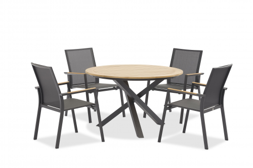 Обеденный стол Timra с неповторимым и лаконичным дизайном отличается своим каркасом. Конструкция изготовлена из трех квадратных алюминиевых ножек, скрещенных между собой. Такое интересное и необычное дизайнерское решение придает модели современный внешний вид, а столешница из тикового дерева высшего сорта добавляет нотку тепла и более мягкий характер. Он станет превосходным выбором для обстановки обеденных зон в летних кафе или на террасах ресторанов.
