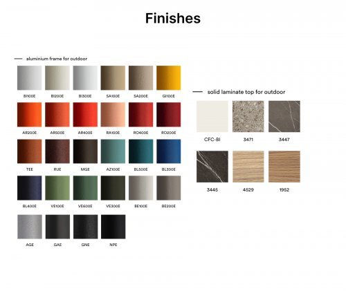 Toa Outdoor – это уличные столы, обладающие легким и минималистичным дизайном. Комбинация декоративных элементов и технико-индустриального стиля делает продукт функциональным и уникальным. Главной особенностью являются конические ножки, которые тоньше у основания и расширяются к Т-образному элементу, поддерживающему столешницу. Toa доступен в широком диапазоне отделок каркаса и столешницы, что делает его универсальным по отношению к персонализации под различные стили открытых пространств и интерьеры помещений.