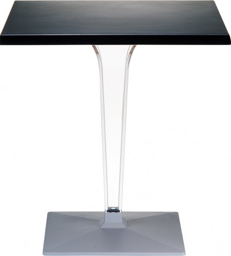 Пластиковый стол Ice представляет собой элегантное соединение нескольких материалов. Столешница выполнена из верзалита, колонна - из прозрачного поликарбоната, основание - из окрашенного алюминия.