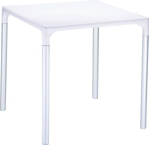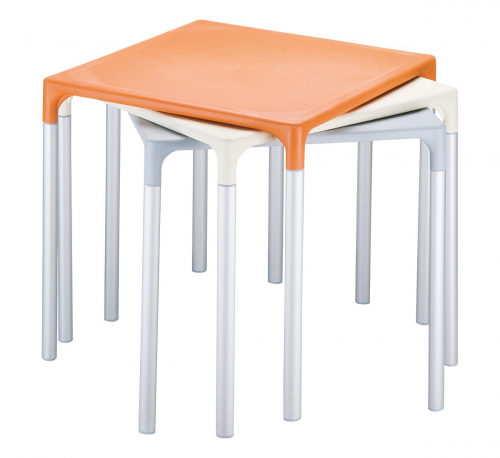 Квадратный пластиковый стол Mango Alu изготовлен с использованием новейшего поколения технологий формования пластмасс под давлением, ножки выполнены из анодированного алюминия.