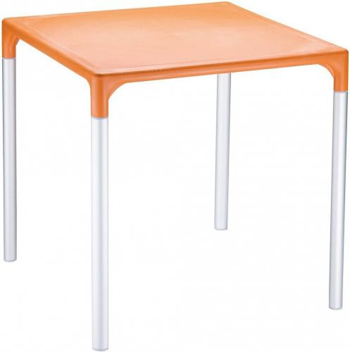 Квадратный пластиковый стол Mango Alu изготовлен с использованием новейшего поколения технологий формования пластмасс под давлением, ножки выполнены из анодированного алюминия.