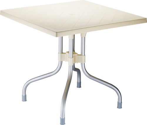 Квадратный пластиковый стол Forza со столешницей из перерабатываемого полипропилена и ножками из анодированного алюминия. Благодаря алюминиевому каркасу столы Forza устойчивы и и могут использоваться на открытом воздухе.