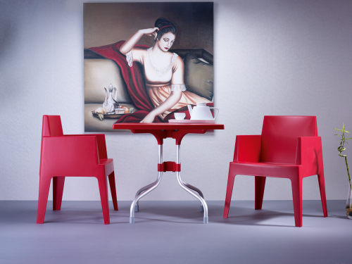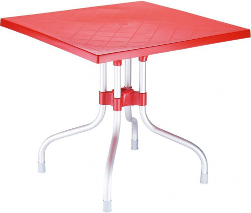 Квадратный пластиковый стол Forza со столешницей из перерабатываемого полипропилена и ножками из анодированного алюминия. Благодаря алюминиевому каркасу столы Forza устойчивы и и могут использоваться на открытом воздухе.