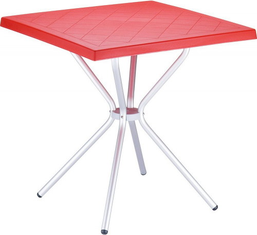 Квадратный пластиковый стол Sortie со столешницей из перерабатываемого полипропилена и ножками из анодированного алюминия.