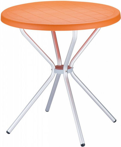 Круглый пластиковый стол Elfo со столешницей из перерабатываемого полипропилена и ножками из анодированного алюминия. Благодаря алюминиевому каркасу, столы Elfo устойчивы и и могут использоваться на открытом воздухе.